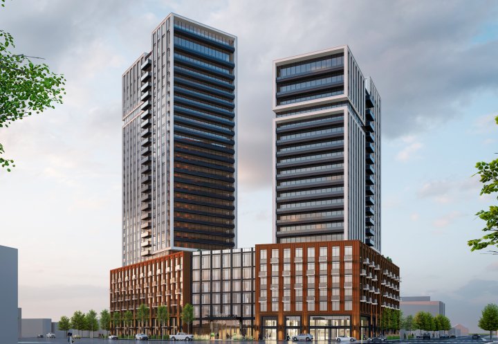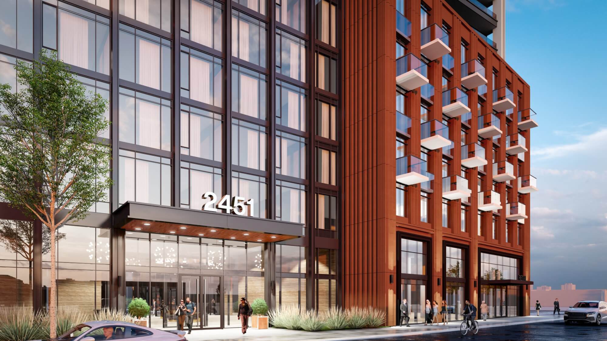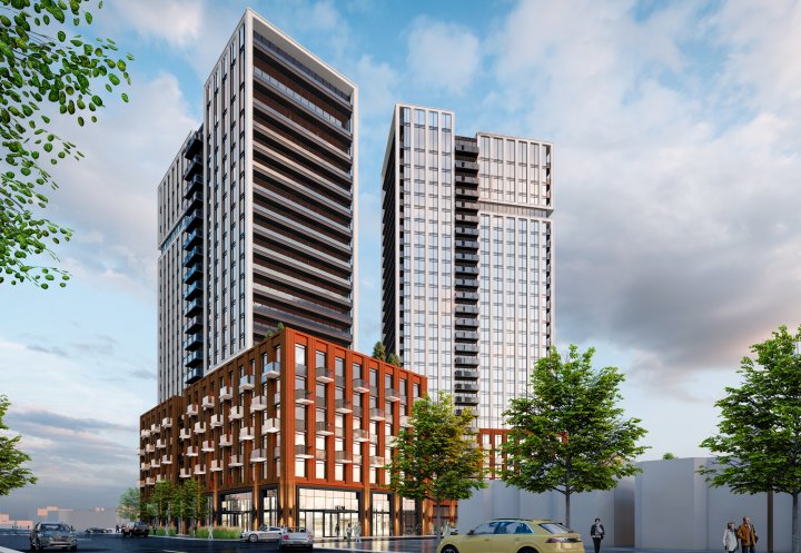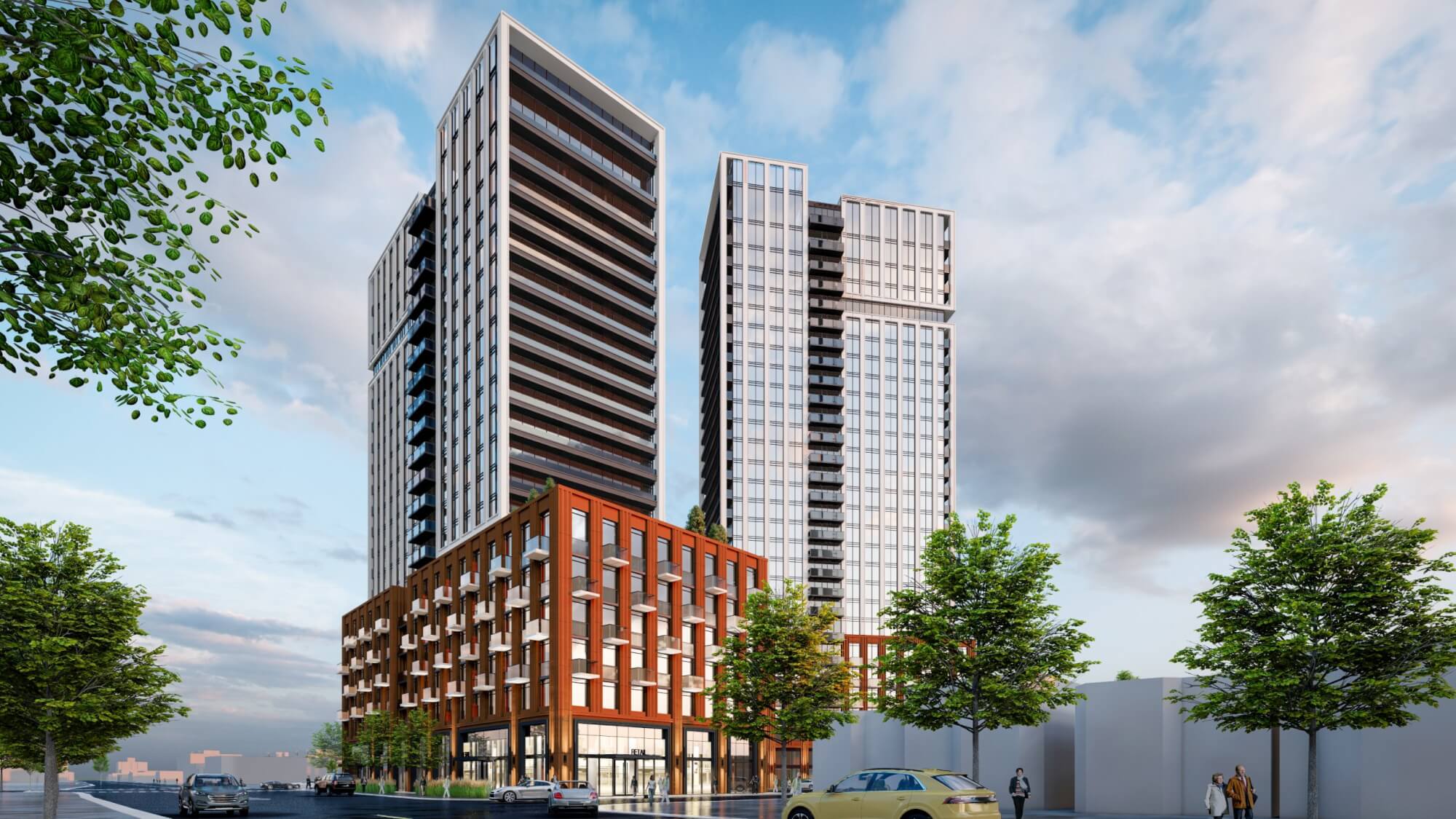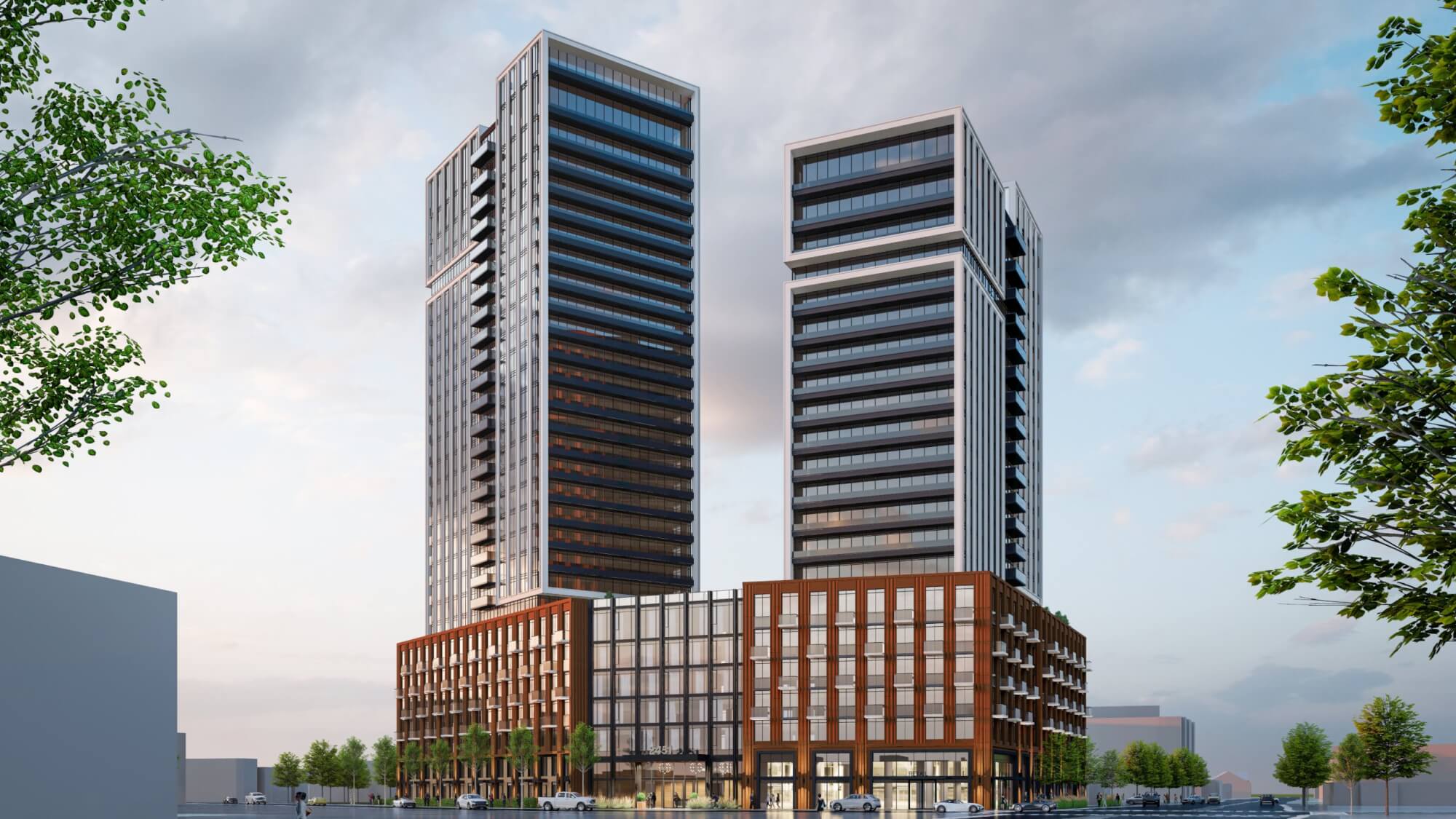 2451 Dufferin is a planned infill mixed-use high-rise development in the Briar Hill-Belgravia area of Toronto. The site seeks to replace an existing automotive dealership with 671 new residential units and accompanying retail space in a large podium and two-tower configuration that transitions nicely to the surrounding neighbourhoods. The project will provide parkland dedication on site which will unlock existing unused green space owned by the city. The development is approximately 500 meters to the new Dufferin Crosstown LRT station making it a prime transit-oriented community.
