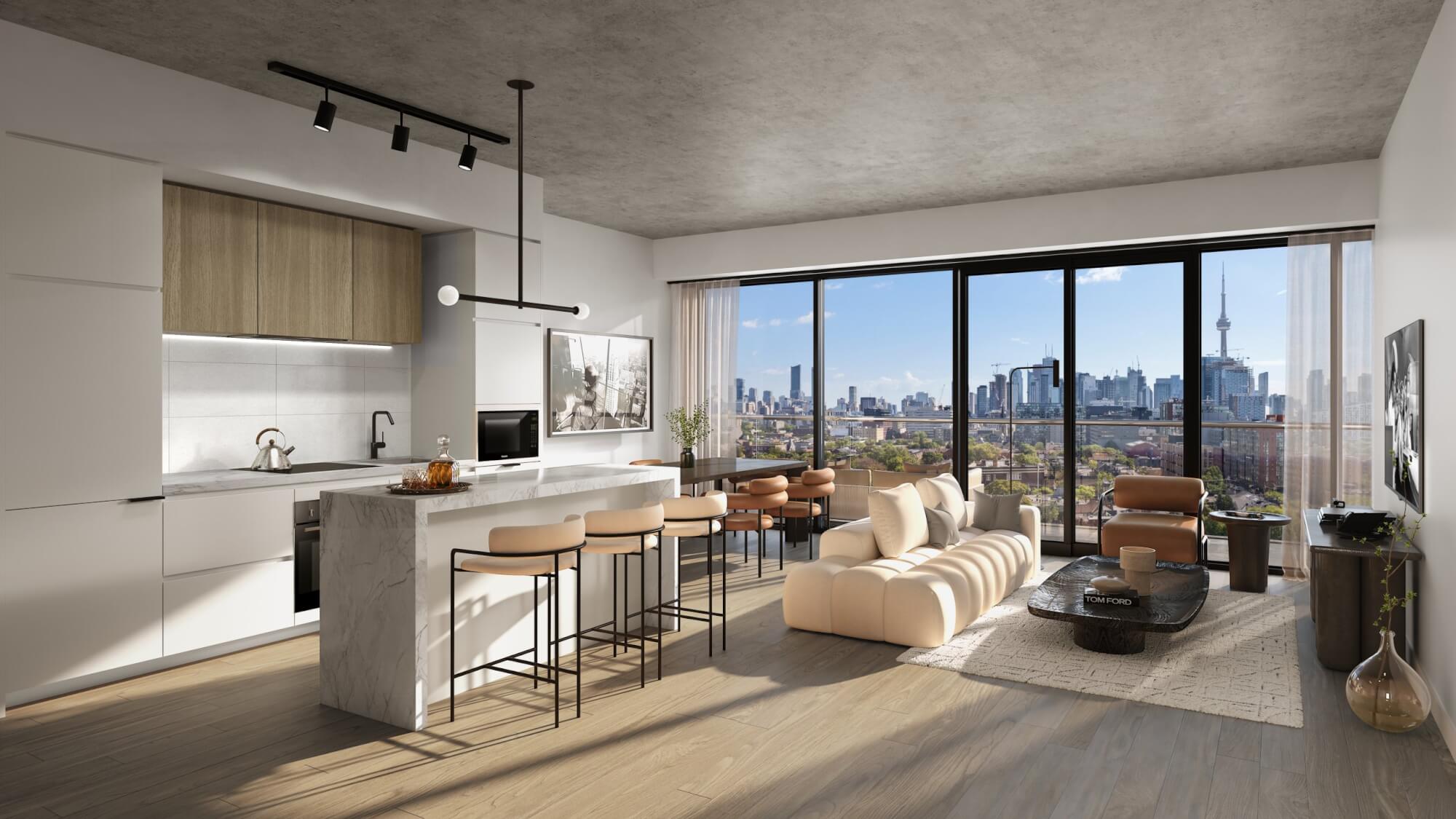 Bellwoods House, located at 111 Strachan Ave is a mid-rise infill development that will replace mechanic shops and a small bar with 322 new homes, while preserving a beautiful second empire heritage building. Bellwoods House is located between two future higher order transit stations, and steps to some of the largest green spaces in downtown Toronto, including the beloved Trinity Bellwoods Park. The design aims to preserve the residential character of Strachan Ave with townhouses at grade, but also seeks to activate the laneway townhouses wrapping the rear of the building. The rehabilitated heritage building and the townhouse units proposed along Strachan Avenue will help to animate the streetscape, while the architecture provides a seamless transition from the King Street West corridor toward Trinity Bellwoods Park. The building is aims to be reverential to the existing character of the neighbourhood, bringing high quality materials and a high attention to detail to the street along with touches that are both residential and industrial in nature, which is a reflection of the existing uses in the area.